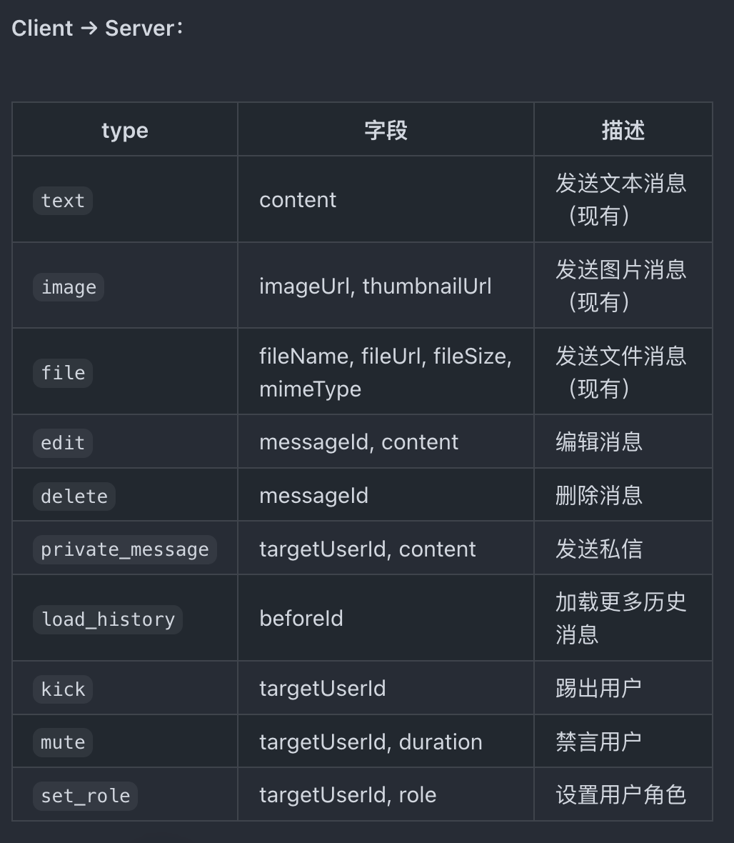 CREATE INDEX idx_messages_reply_to ON messages(reply_to_id);新增 WebSocket 消息类型总览